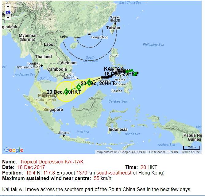 Tropical cyclone Kai Tak had caused serious damage to Philippines and Sabah recently. According to the trajectory projection from Hong Kong Observatory, it is moing towards the Peninsular Malaysia, and will be reaching our shore on 23 December. Although its strength already reduced after passing the Philippines, still it can cause serious damage when it reaches Peninsular Malaysia.