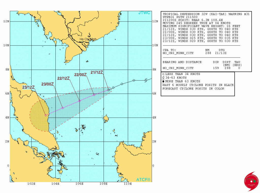 Threat to Malaysia: This condition may cause strong winds more than 60 kmph and waves more than 4.5 metres (15 feet) over the waters off Labuan FT, Sabah (Interior, West Coast, Kudat & Sandakan), Sarawak, Kelantan, Terengganu, Pahang & East Johore.
