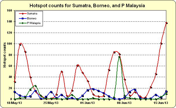 Haze has been reported a few places in Malaysia. Following is the latest ASEAN fire hot spot map on 16 June 2013