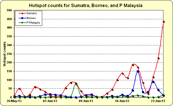 Number of hot spot detected at Sumatra has doubled to more than 400 spots. It could cause serious dense haze in next few days.