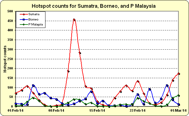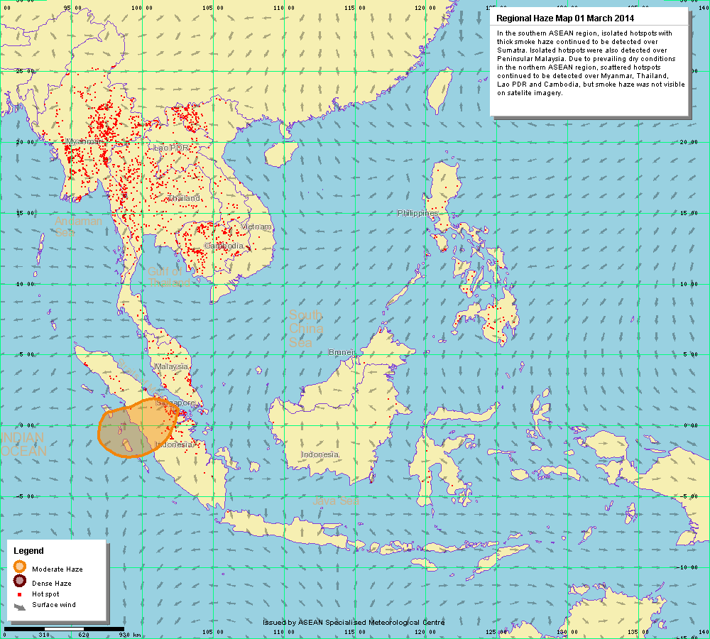 Based on the satellite observation, thick haze is currently covered the center Sumatra region, with the hot spot counter about 175. The monsoon wind still blowing from Northeastern direction, as the result, the haze from the wild fire doesn’t reach Peninsular Malaysia and Singapore.