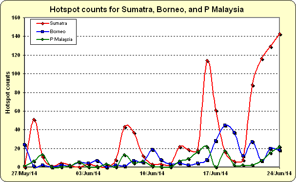 The result from the satellite detected moderate haze area shows haze from Sumatra already reach the Peninsular Malaysia. While the fire hotspot number still increasing. It seem like the haze episode will be continued unless there is drastic steps taken to put off the wild fire in Sumatra Island.