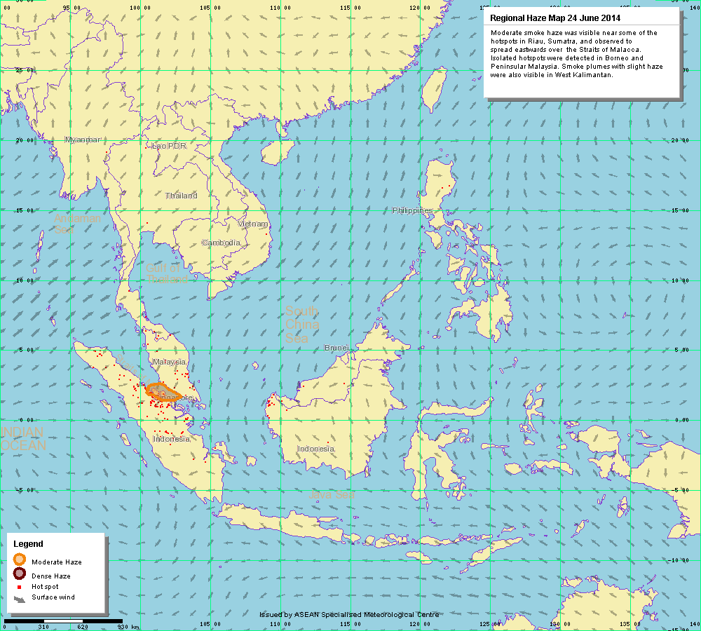 ASEAN Satellite Detected Fire Hotspots and Haze Map on 24 June 2014