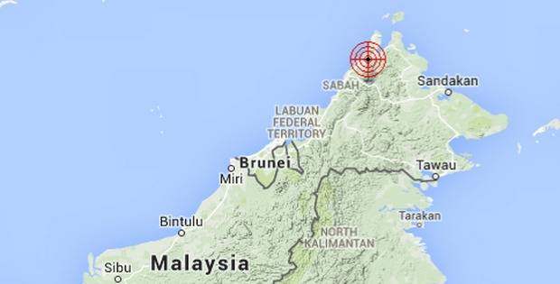 A moderate earthquake has occurred with magnitude 5.9 Richter scale in Borneo on 07:15 am,05 June 2015. The earthquake epicenter is located at 6.1 North latitude and 116.6 East longitude.16km northwest of Ranau, Sabah.Tremors felt in Ranau, Tambunan, Pedalaman, Tuaran, Kota Kinabalu, Kota Belud,Sabah.